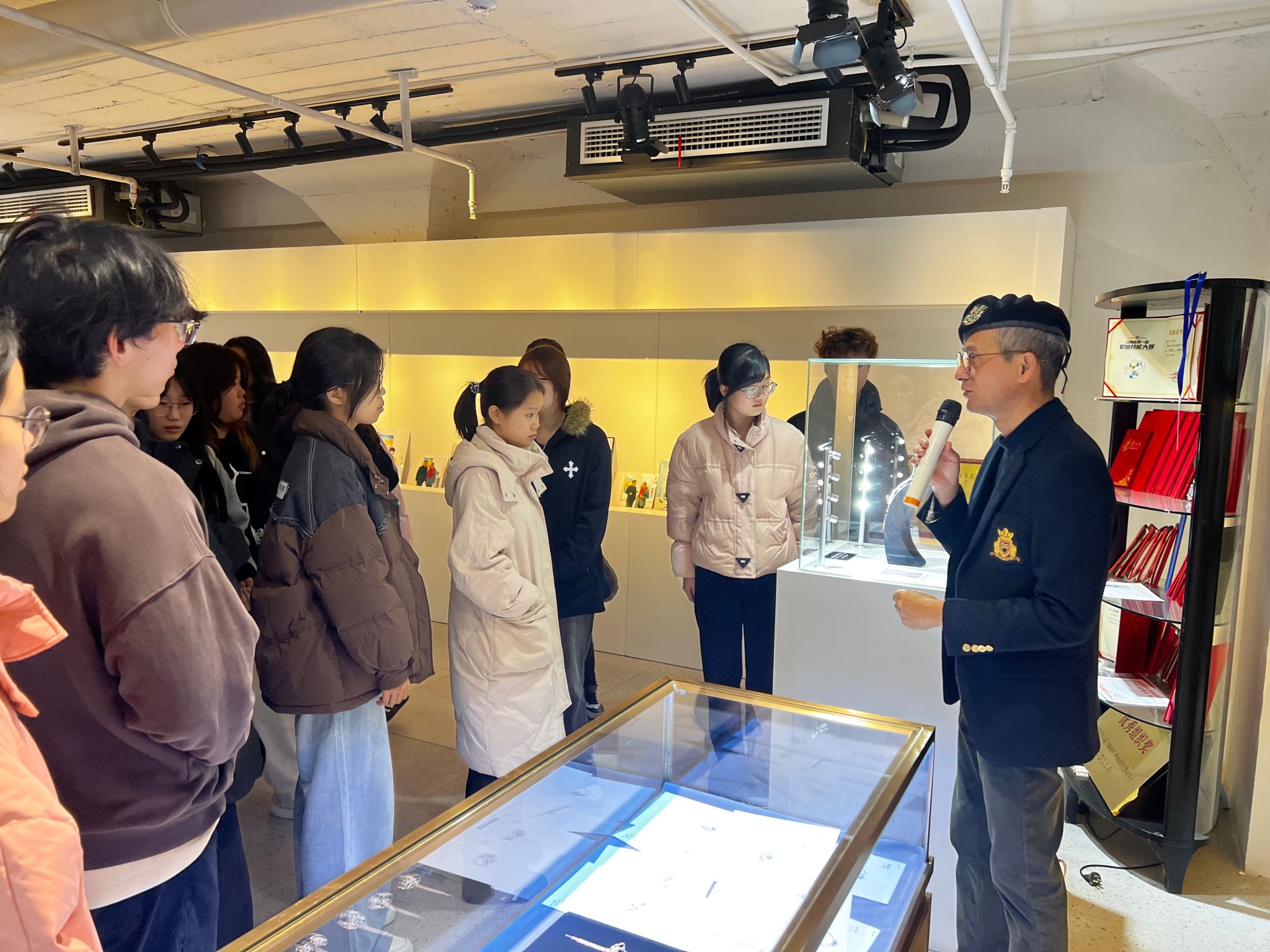 抵达工作室后,吴刚大师首先带领学生参观了作品展示区,详细讲解了“豫章首饰錾镶”技艺的历史渊源、工艺特点及传承现状。展区内一件件精美的錾镶首饰、宝玉石饰品,让学生们近距离领略了传统工艺的精湛水准,不时驻足观察、拍照记录。大师结合自身从业经历,分享了珠宝加工行业的发展趋势,鼓励同学们既要夯实专业基础,也要坚守匠心精神,在传统技艺中融入现代创意。