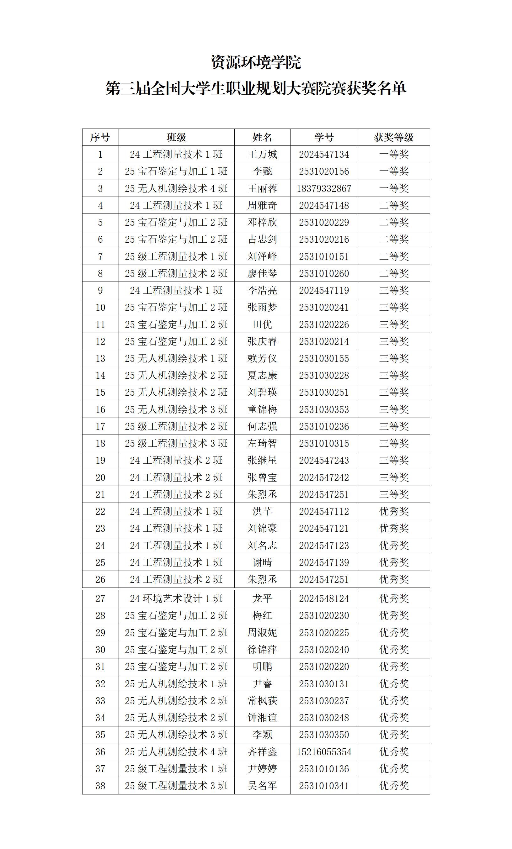 经个人申报、材料评分、现场答辩、学院评议等环节,现将资源环境学院第三届全国大学生职业规划大赛院赛获奖情况予以公示,具体名单如下: